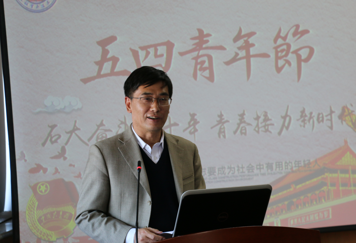学院党委书记张卫东在开幕式上发言,他表示此次经纬论坛的举办有诸多含义,今年是我国改革开放四十年,也是我校建校65周年,77、78级学长在石大求学、奋斗、奉献40年,与国家改革开放这一重要历史时期重叠,是改革开放四十年的亲历者,40年来与学校相濡以沫、风雨同舟,见证了学校的发展,是学校历史的见证人。恰逢五四青年节到来之际,让当代青年学子与优秀的老一辈勘探人穿越四十年时空进行一次心灵对话意义深远,同时作为经纬论坛开坛第一讲,六位学长与青年学子共话青春,也欲为学子们树立榜样,启示青年学子要先通过“经纬”确定好坐标,才能“堪天下、探乾坤”。