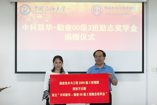 据悉,“中科联华-勘查00级3班励志奖学金”主要用于资助家庭贫困的优秀学子,由必赢bwin线路检测中心每年评选出两名受助学生,每人获得5000元资助。(作者:郑珊珊 黄向前 左奥)