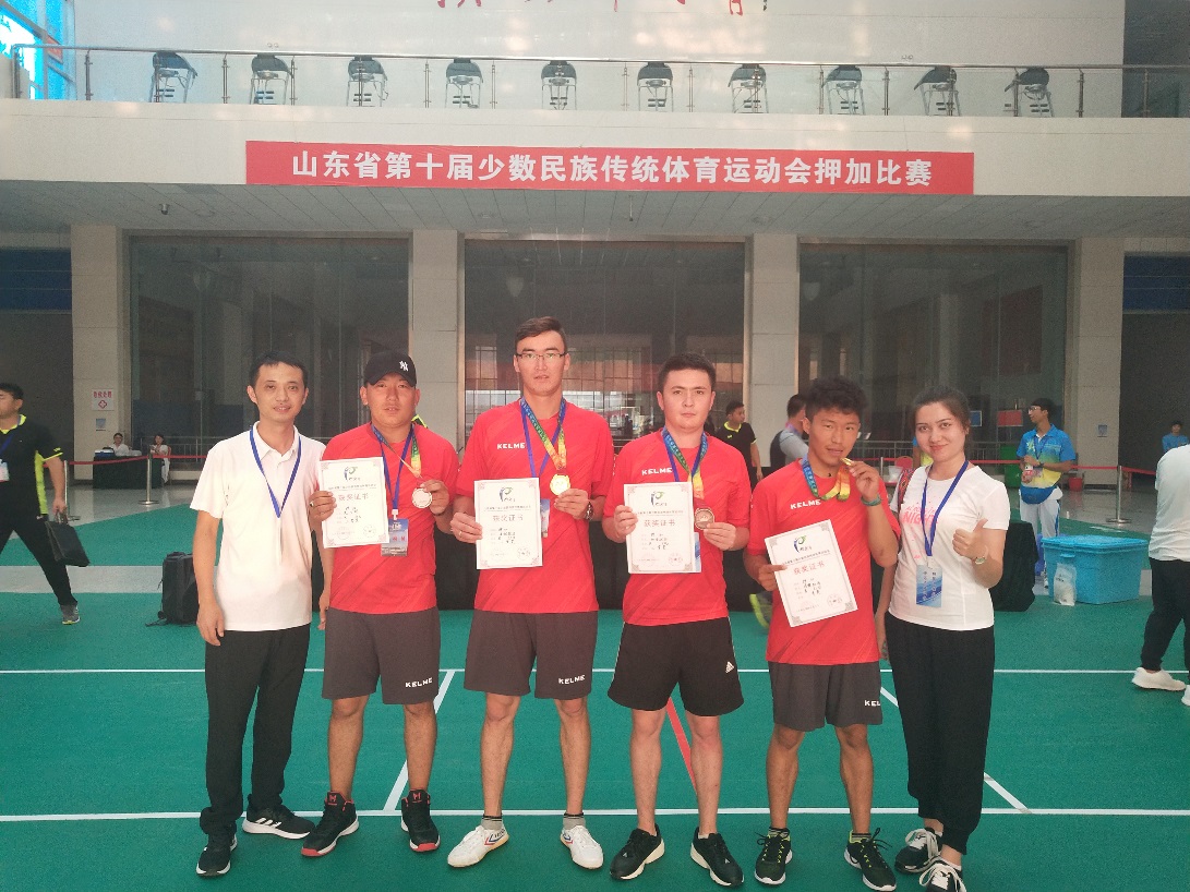【本站讯】9月10-12日,山东省第十届少数民族传统体育运动会在滨州市举办。必赢bwin线路检测中心学生波拉提江·对山别克、旦增扎西、加依达尔·奴尔别克,材料科学与工程学院学生哈吉木拉提·叶尔肯别克4位同学代表青岛队参加押加项目,夺取两枚金牌、两枚铜牌。