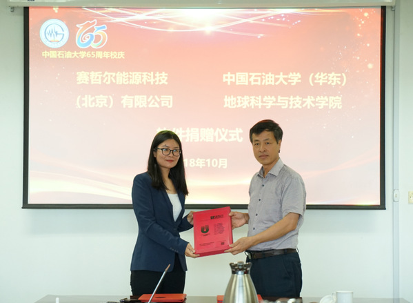 【本站讯】10月1日下午,必赢bwin线路检测中心“赛哲尔能源科技(北京)有限公司软件捐赠仪式”在工科楼C座251会议室举行。捐赠仪式由学院副院长裴仰文主持,院长林承焰、党委书记张卫东、副院长邓少贵等出席捐赠仪式,我校89级校友、赛哲尔能源科技(北京)有限公司法人、总经理赵锋女士向学校捐赠该公司研发的“UniEarth储层岩石物理软件”,学院测井系、地球物理系的师生参加捐赠仪式。