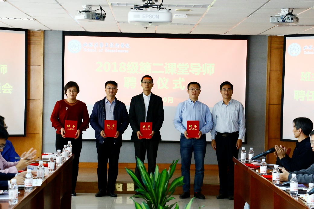 首先,徐永涛副书记宣读了2017级班主任和2018级班主任、第二课堂导师聘任名单,孙鹏燕副处长、石国卿副书记为2017级受聘班主任颁发聘书,张卫东书记、18级新生代表郑津杭、房睿为2018级受聘班主任和第二课堂导师颁发聘书。