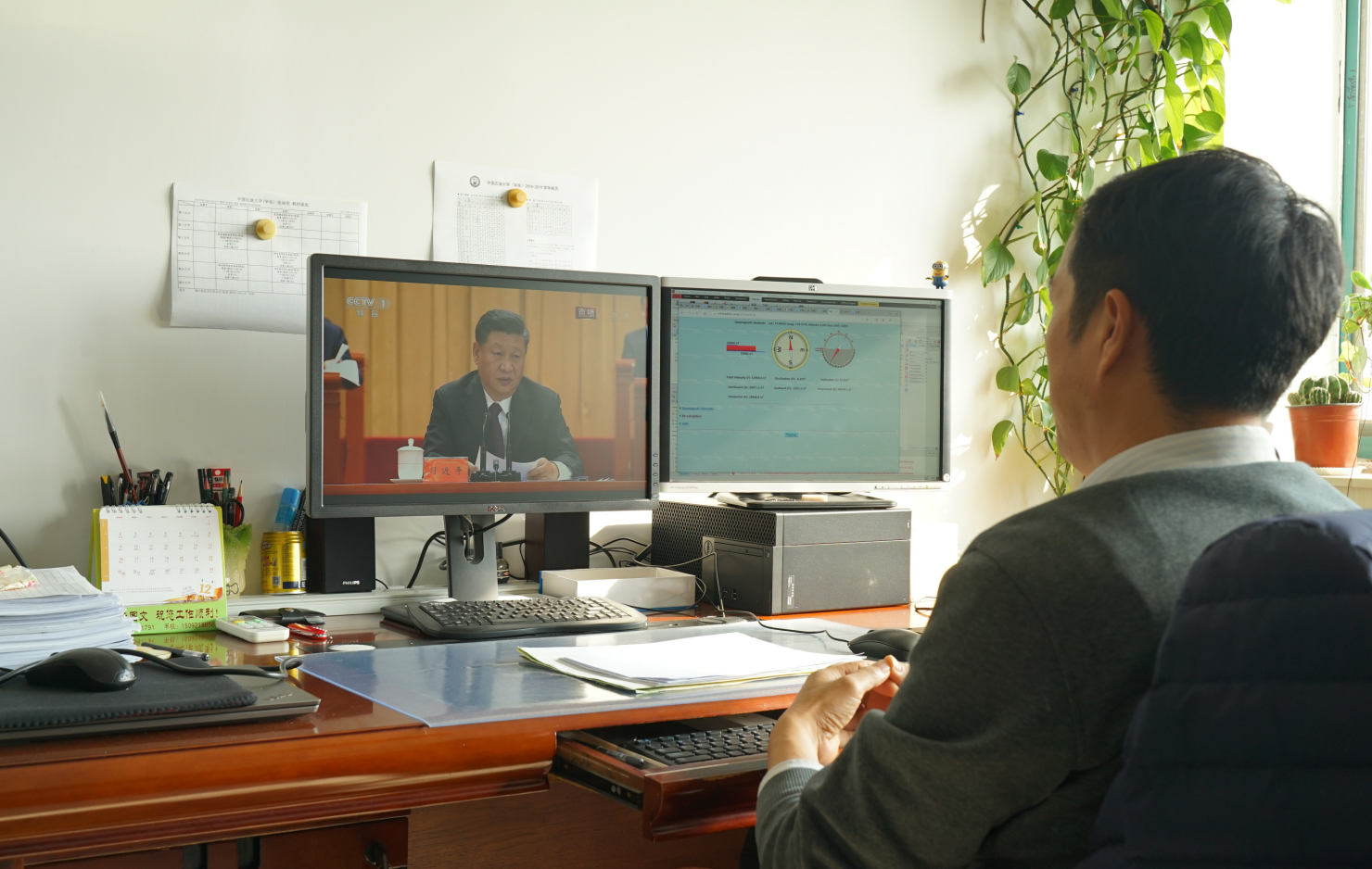 学院部分教师在办公室收看直播 雷斌摄影