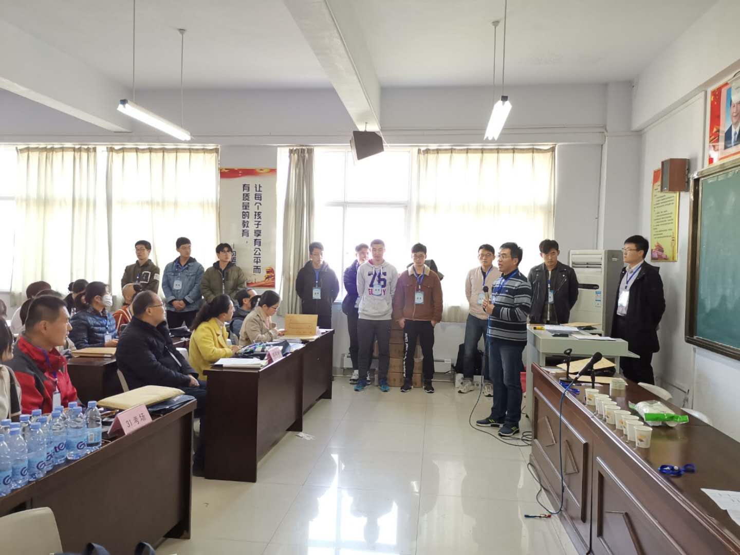 为做好试卷保密工作,保证竞赛的顺利进行,3月30日8:00,巡考老师携带试卷奔赴各个考点,下午检查各考点的考务工作是否准备妥当;3月31日8:00,巡考老师在各考点考务室与监考老师一起学习了监考老师职责。在巡考间隙,老师还向考生介绍了我校的学科设置、培养方案、就业质量等情况,并向考生发放招生宣传材料,欢迎广大考生报考我校。