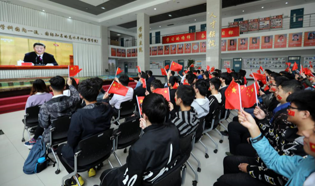 4月30日上午,纪念五四运动100周年大会在人民大会堂举行。中共中央总书记、国家主席、中央军委主席习近平出席大会并发表重要讲话。地学院青年师生齐聚工科楼C座一楼大厅,收看盛会,热切关注这一重要的历史时刻。