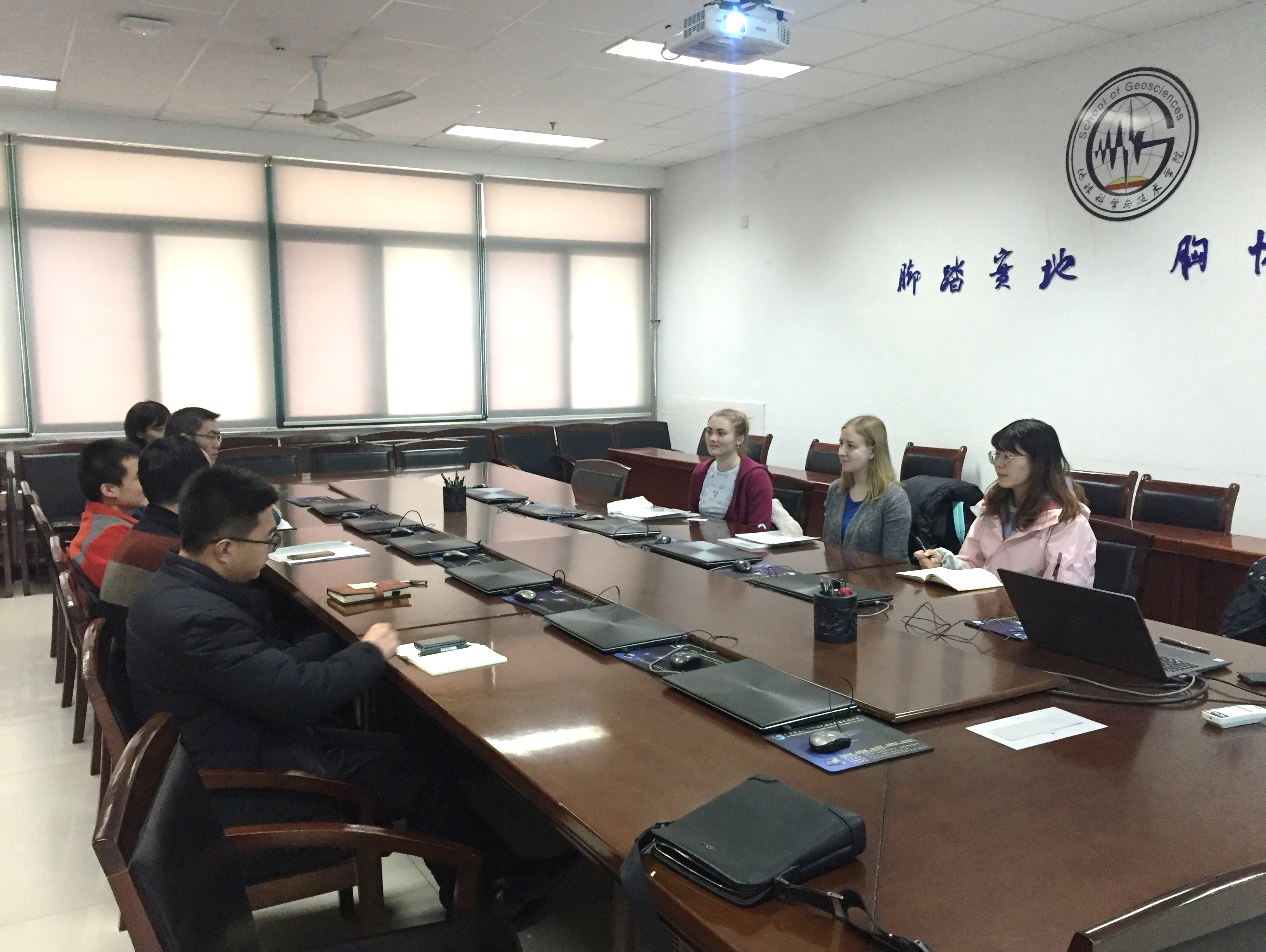 2月28日,必赢bwin线路检测中心裴仰文副院长等七位老师和两位交流生进行了座谈,对她们的到来表示欢迎,并与其一起进行了面对面交流,讨论并安排了两名学生在必赢bwin线路检测中心(华东)为期三个月课程学习计划。必赢bwin线路检测中心为两位学生专门开设了3门专业课程及1次野外地质实习,分别为地震数据处理、岩石学、地球物理勘探、及青岛基岩海岸地质实习,针对两名学生的兴趣所在,还委托国际教育学院安排了两位学生的中文和体育课的学习,以帮助她们更好地了解中国的历史与文化。
