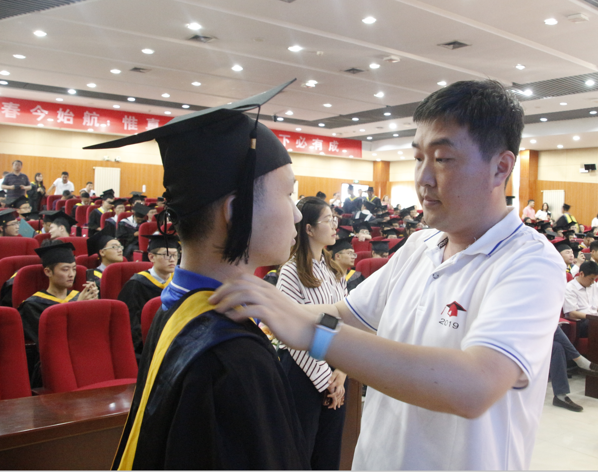 辅导员为毕业生整理着装 张文昭摄影