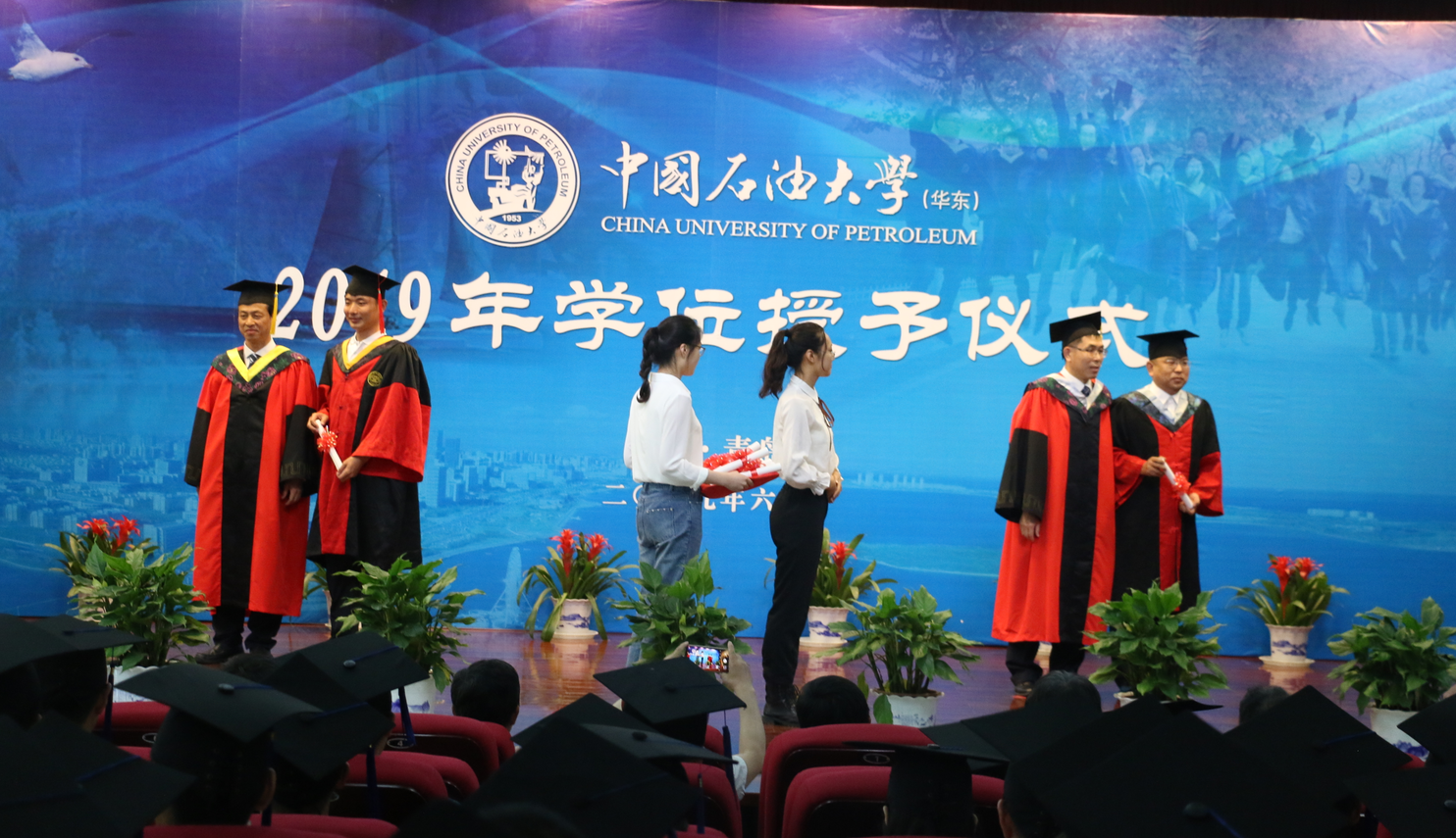 【本站讯】6月23日下午,必赢bwin线路检测中心2019届毕业生学位授予仪式在逸夫礼堂隆重举行。仪式由学院副院长邓少贵主持。学院学位评定分委员会主席、院长林承焰教授,学位评定分委员会委员,教授委员会主席刘可禹教授共同为386名本科毕业生和287名硕士毕业生授予学位。