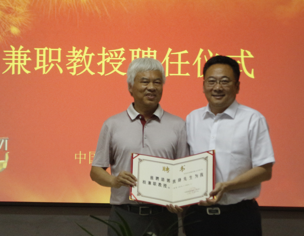 操应长为郭焦锋、周锦明颁发兼职教授聘任证书。他表示,目前学校正在扎实推进“双一流”建设,亟待人才,渴望人才,希望两位校友在未来更多地参与学校的建设发展,为学校培养更多更好的人才。