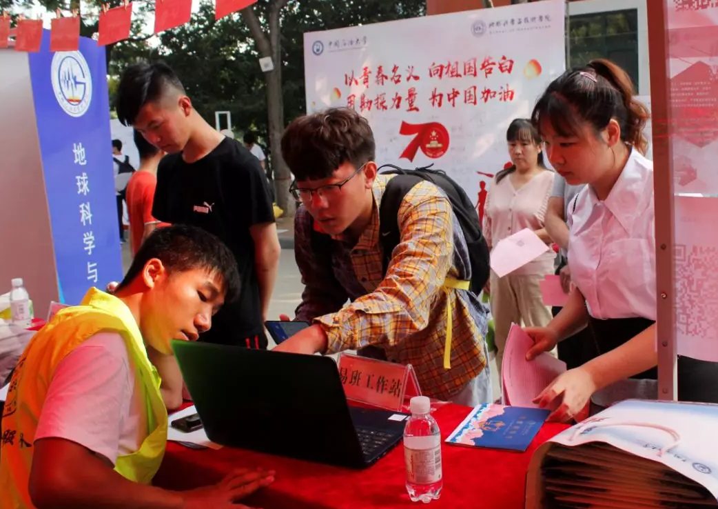 今年是新中国成立70周年,必赢bwin线路检测中心学生会特别准备了“以青春名义向祖国告白,以勘探力量为祖国加油”的迎新展板,希望每一位新生将这份爱贯穿地学院、石大和祖国母亲,从入学的一刻起,继承石油人的责任担当和家国情怀,热爱伟大祖国,担当时代责任。前来报道的新生纷纷在展板前签字合影留念。不仅如此,校领导也在展板上签字,向祖国告白。