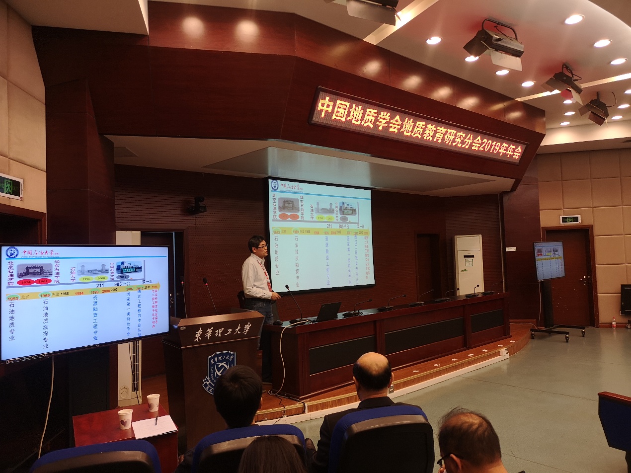 2019年年会主要围绕“大数据和人工智能与地质教育融合”、“新时代一流地学专业建设与教学改革”、“完善实践教学评价体系、促进实践教学质量提升”、“构建国家虚拟仿真实验教学共享平台”等四个方面的议题进行了深入的研讨和交流,来自北京大学、中国地质大学、必赢bwin线路检测中心(华东)、中国海洋大学等10余所高校的专家学者分别围绕这四个议题作主题报告。必赢bwin线路检测中心资源系主任张立强教授应邀作了题为“油田地质实习虚拟仿真实验的构建与实践”的年会主题报告,介绍了近几年我校资源勘查工程专业的建设成果,重点交流了油田地质实习虚拟仿真实验项目的特色和创新点,该项目构建了“理论与实践相结合,虚拟、仿真、现实三位一体,两条主线、四个层次”的油田地质实习实践教学体系,形成了包含多个典型含油气盆地、内容丰富、类型多样、共享性强的油田地质实习虚拟教学资源,获批2018年国家虚拟仿真实验项目。