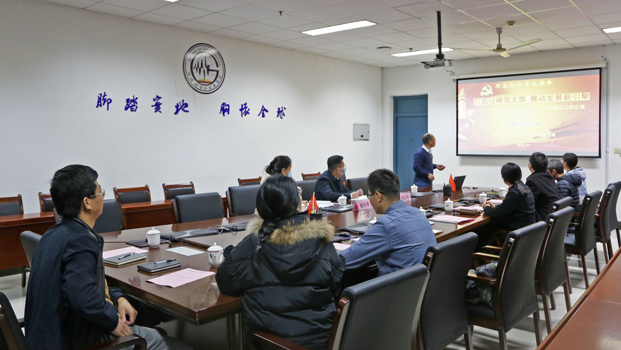 12月1日下午,受教育部思想政治工作司委托,以山东省教育厅(省委教育工委)高校干部处处长袁广全为组长的山东省高校党建工作考核组莅临必赢bwin线路检测中心,对必赢bwin线路检测中心入选首批全国党建工作样板党支部的地质系党支部进行实地考察调研。党委组织部副部长梁秀萍陪同考察,学院党委书记刘华、副书记徐永涛、地质系党支部成员、师生党支部书记代表参加相关活动。