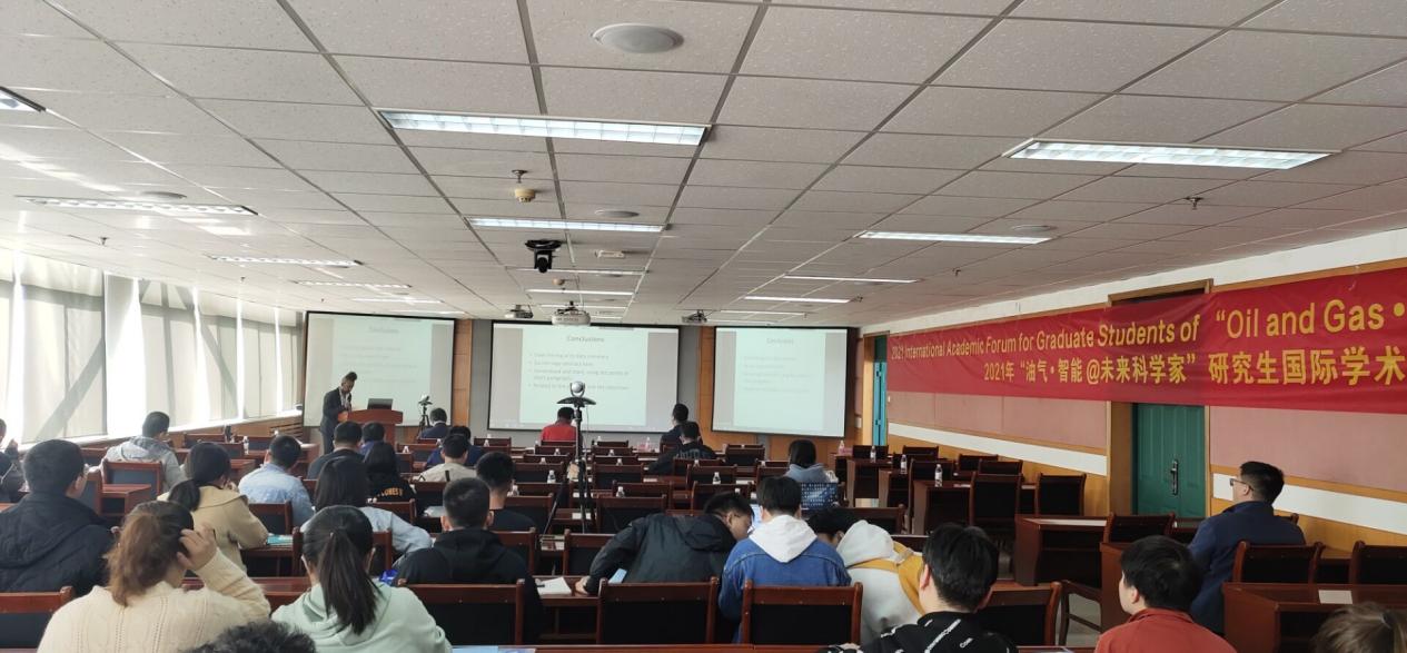 2021年11月3日至4日,2021年“油气•智能 @未来科学家”研究生国际学术论坛在我校胜利举办。本次论坛为线上线下同步进行,我校设立主会场,外地参会代表和专家在线上进行发言。本次论坛得到国内多所著名高校及科研院所的大力支持,先后收到来自北京大学、中科院声学研究所、兰州大学等参会论文50篇,经会议专家评审,最终优选26篇论文作大会发言。论坛紧扣油气和人工智能两大主题,全英文进行学术报告,主会场特邀请国内外15名油气和人工智能专家做学术前沿报告,并邀请美国得克萨斯大学阿灵顿分校 Max Qinhong Hu教授、国家级特聘专家刘可禹教授做科技论文写作的主题报告,研究生参会代表分别在油气地质和地球物理两个分会场做主题发言。