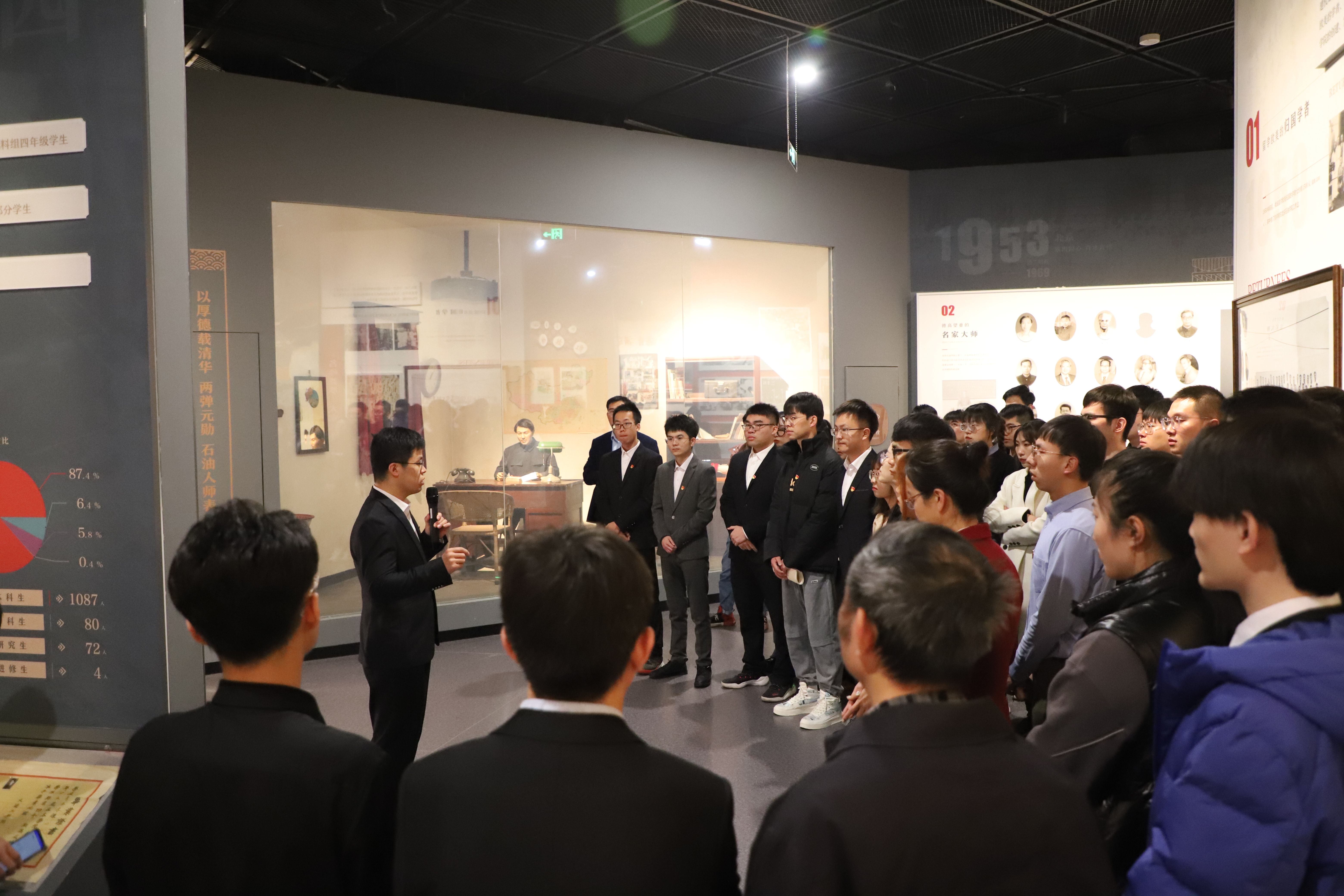 “祖国和人民的利益在期待着你们以高度的热情和毅力,把祖国的石油资源开发出来。”朱德委员长在给北京石油学院学生的回信中表达了对青年学生的殷切期盼。“把爱情献给你,把一生献给祖国。”在学校档案馆留存的中国化学工程学家、核工业学家、两弹功臣、北京石油学院副院长曹本熹写给妻子的150余封信中,字里行间无不流露出对家人的惦念和对祖国石油事业的一片赤诚。“从校园走向荒漠,助推国家第一颗原子弹、氢弹成功爆炸,解决朝鲜战争用油混乱问题,曹本熹的个人事迹化为老一辈石大人为守护国家安全、建设社会主义事业鞠躬尽瘁的一道缩影,石大人用血汗奉献党的光辉历程。”在必赢bwin线路检测中心(华东)档案馆曹本熹塑像前,全体党员身姿笔挺,表情肃穆,听档案馆教师马梦华深入解读曹本熹先生个人事迹。