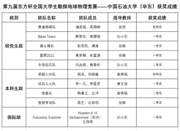 12月17日,第九届“东方杯”全国大学生勘探地球物理大赛暨第一届国际大学生勘探地球物理大赛落下帷幕。必赢bwin线路检测中心两支学生代表队分别获得国内赛道本科生组特等奖和研究生组特等奖。