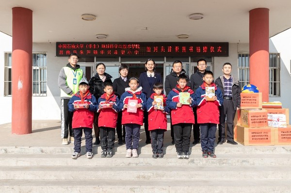 郑珊珊介绍学校和学院发展历史、学科科研、人才培养等情况,对华兴希望小学在艰苦的办学条件下取得的办学成绩表示钦佩。她表示,在了解到华兴希望小学图书资源匮乏后,学院党委积极动员各方力量募集图书,春晖志愿服务队积极响应号召,面向全校师生发起“书送阳光,点亮梦想”图书捐赠活动,共募集爱心图书1356本、文具108件。后期,学院将通过实践基地平台,借助一流学科资源,发挥春晖志愿服务队品牌优势,对接小学需求,开展深入合作,进一步发挥学院服务山东、服务地方的作用。