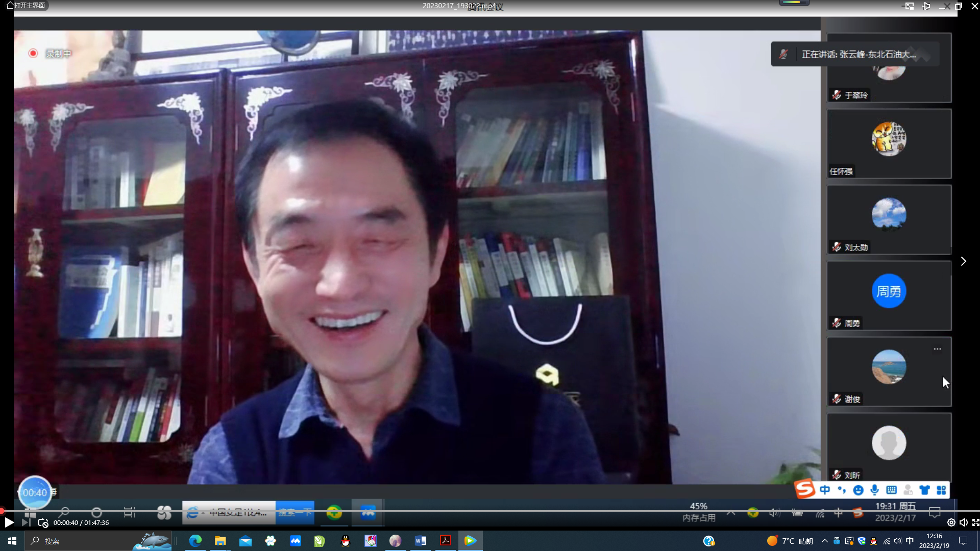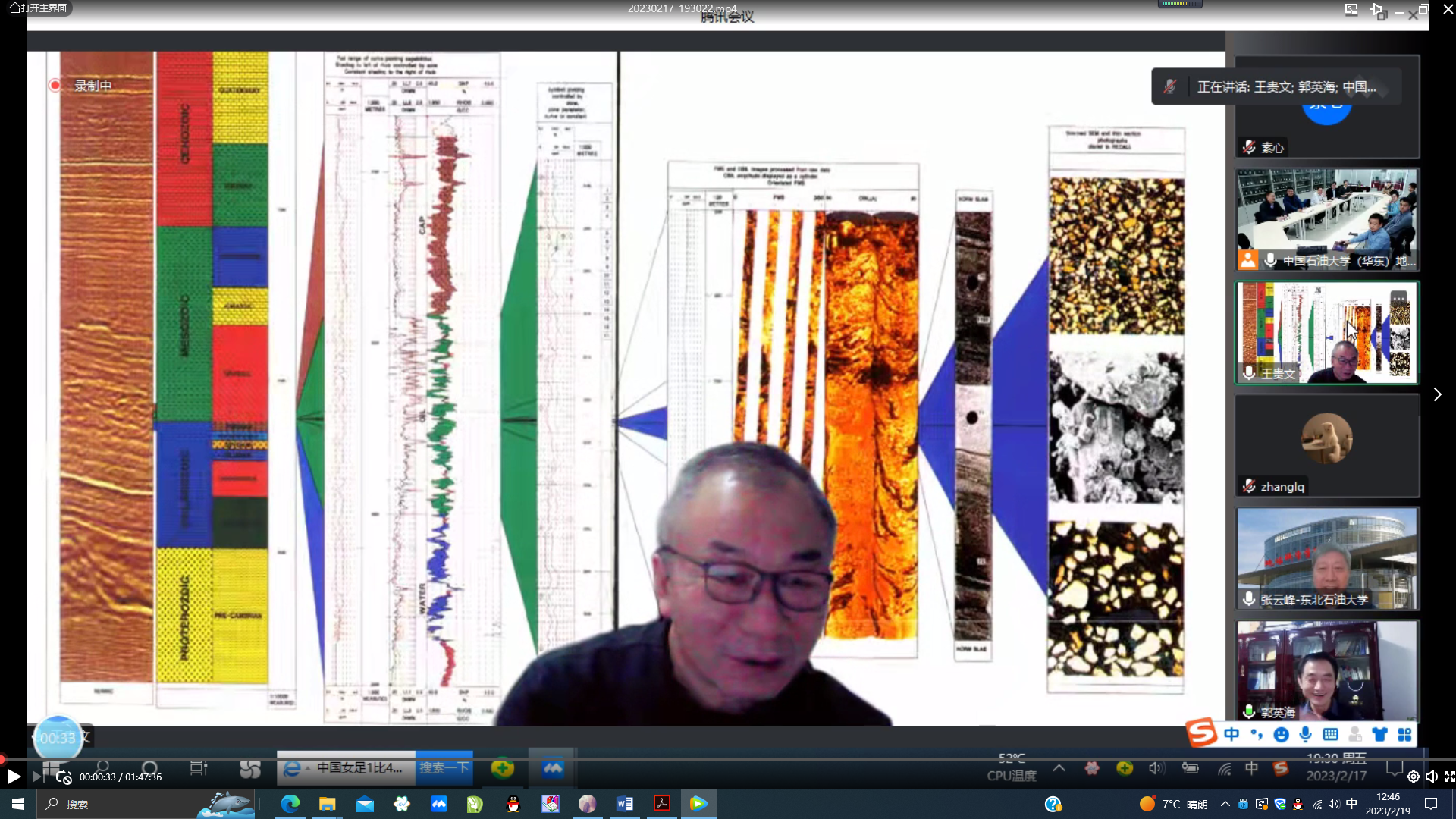 为完成课程思政示范课程数字化资源建设、加强审核把关、发掘和转化典型经验,2月17日,教育部地质学类教指委举办了“油田开发地质学”国家级课程思政示范课专家点评与交流会,也是教育部“油气田开发地质学”课程虚拟教研室的一次学习研讨会。地质学类教指委邀请了5位委员进行该课程建设资料的审核把关、会议点评与交流,本次邀请的专家包括:必赢bwin线路检测中心(华东)副校长操应长教授、中国矿业大学资源与地球科学学院郭英海教授、必赢bwin线路检测中心(北京)地球科学学院院长王贵文教授、吉林大学地球科学学院院长单玄龙教授和东北石油大学地球科学学院院长张云峰教授。我校油田开发地质课程团队以及来自山东科技大学、必赢bwin线路检测中心(北京)等兄弟高校的“教育部油气田开发地质课程虚拟教研室”骨干教师参加了本次专家点评和交流会,会议由教育部地质学类教指委副主任、必赢bwin线路检测中心(华东)副校长操应长教授主持。