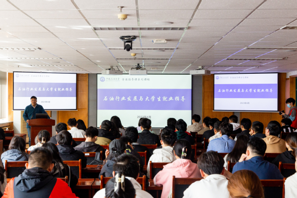 张汇理从胜利油田基本情况、人才发展平台、薪酬福利待遇以及招聘工作安排等四个方面对石油行业的发展趋势与学生就业前景进行了介绍,同时具体介绍了胜利油田科研成果、发展动力、人才培养发展序列等情况。她结合习近平总书记在视察胜利油田时提出“能源的饭碗必须端在自己手里”的重要指示精神,强调地学专业是国之所需,经久不衰,坚信同学们未来定能勇担大任,能源报国。