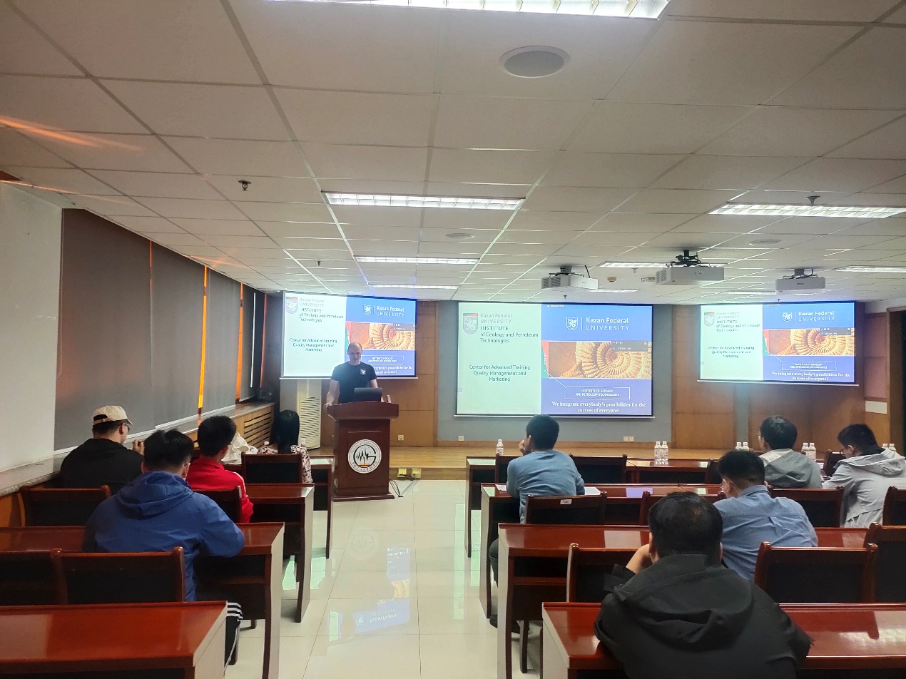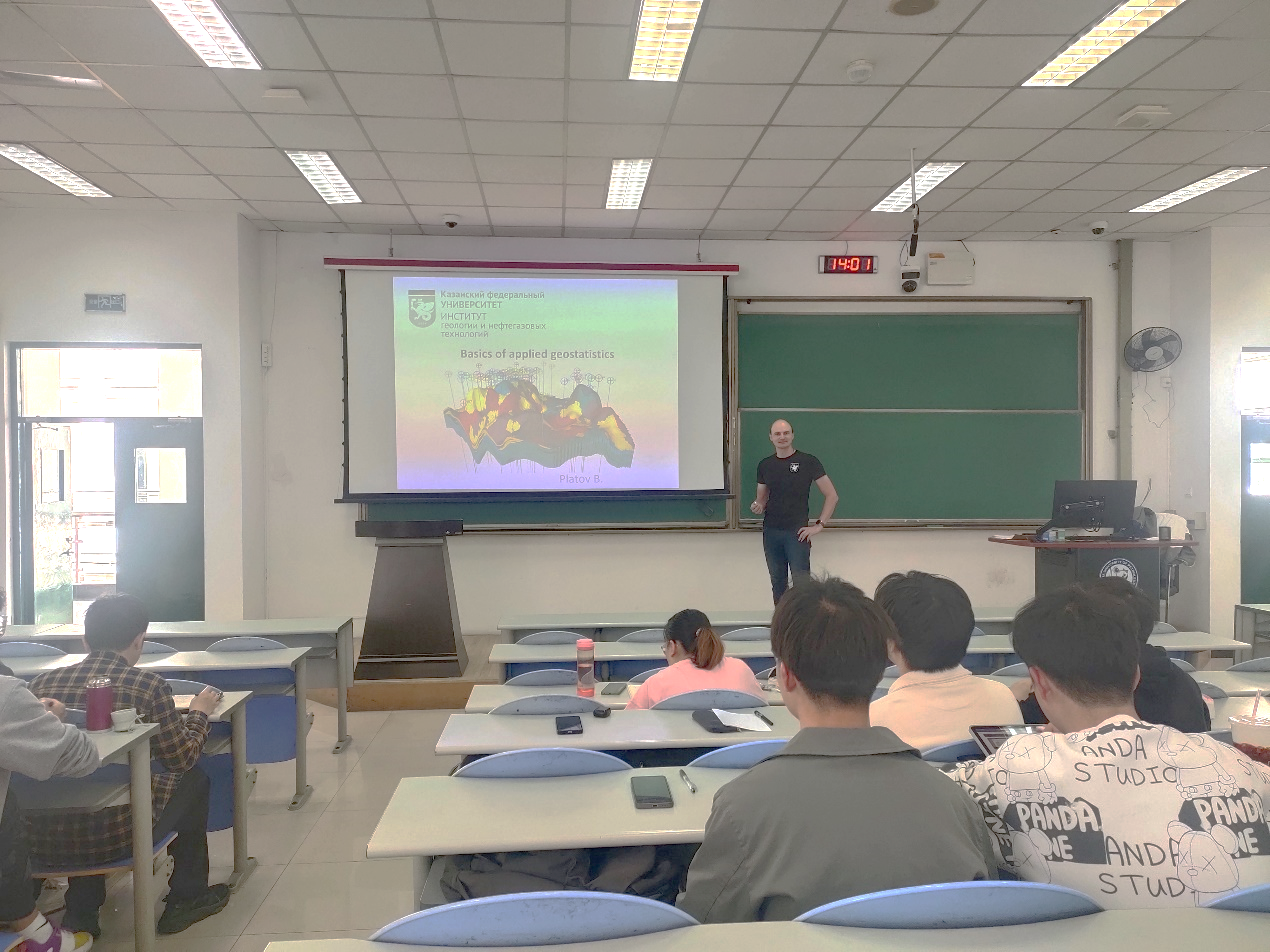 5月7日-5月12,必赢bwin线路检测中心申请并获批的2023年国际教育周研究生课程《地球科学与数据分析》顺利完成授课,该课程由俄罗斯喀山联邦大学Boris Platov副教授开设,主要讲授如何利用地质统计数据构建静态地质模型,课程内容包括变异函数及其参数、克里金和高斯随机函数模拟等。学院共20名研究生参与上课,通过课程学习和Boris副教授的认真讲解,学生掌握了建立静态地质模型的过程以及地质统计方法的具体应用。同时,全英文的课堂交流和互动也锻炼了学生的英语口语,提高了学生的英语交流能力。在课程授课之余,Boris Platov副教授分别与学校国际合作处和必赢bwin线路检测中心就研究生双学位项目进行了交流,并参加学院组织的国际交流项目宣讲动员会,为学院100多人进行了现场宣讲。