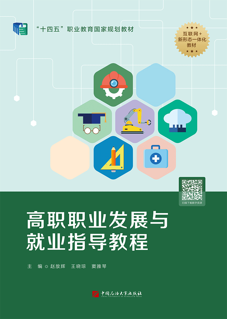 2019年发布的《教育部关于职业院校专业人才培养方案制订与实施工作的指导意见》,明确规定高职院校应将职业发展与就业指导列为必修课或限定选修课,并指出要强化课程思政,深化教师、教材、教法改革,推进信息技术与教学有机融合。《高职职业发展与就业指导教程》ISBN:978-7-5636-7772-6分为职业规划和就业指导两个篇章,从理论学习、工具使用、信息分析、行动策略等不同模块指导学生完成职业生涯规划与就业目标的实现。本教材围绕可读性、操作性、互动性与丰富性,设计“学习任务”“课堂活动”与“成长手卡”,实现教与学的互动融合,增强课堂教学时效;增加“拓展阅读”和“实践建议”,将教学过程延伸到课下,增强课程教学实效;增设“HR访谈”、联合易校招专业团队提供70余个行业介绍及就业技能微视频,将教学素材扩展到企业和移动端,推进教学方式创新。该教材2022年入选山东省第一批“十四五”职业教育省级规划教材。