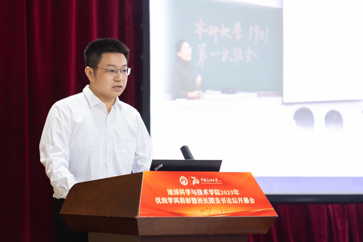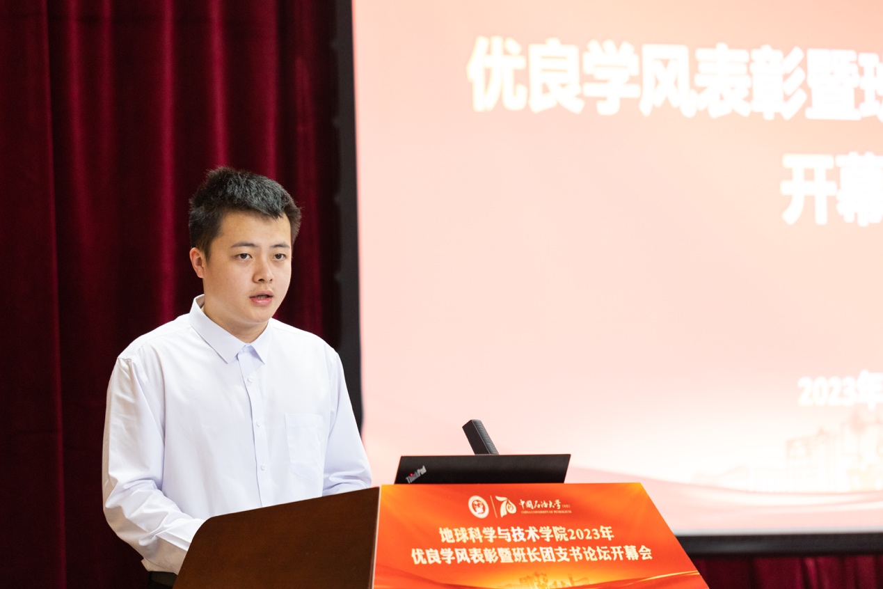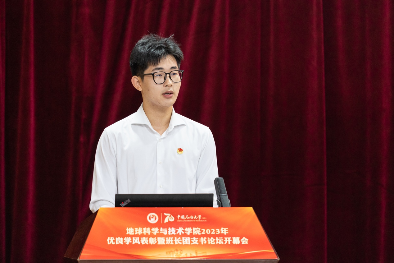 优秀学风班级代表、本研地学1901班班长王瑞丰发言 张胜博摄影
