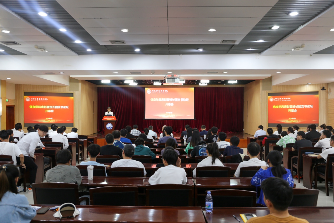 在全党上下深入开展学习贯彻习近平新时代中国特色社会主义思想主题教育之际,为切实推进主题教育在学院人才培养工作中往深处走、往实处落,有力推动学院学风建设,6月11日上午,学院于逸夫楼报告厅举办优良学风表彰暨班长团支书论坛,总结表彰过去一段时期学院学风建设的扎实成效,探讨建立长效机制,开创学院学风建设新局面。学校党委常委、学院党委书记赵放辉,教务处副处长时金华,党委学生工作部(武装部)副部长张程,团委副书记石国卿,学院副院长张宪国,以及学院学生工作队伍、全体班长团支书参加会议。