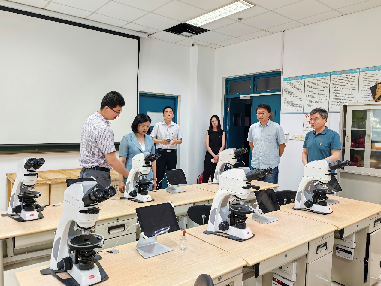 孟凡超为王纪磊一行介绍学院教学实验室