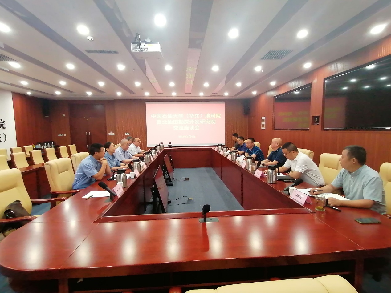 为深入开展学习贯彻习近平新时代中国特色社会主义思想主题教育,推动主题教育走深走实,紧紧围绕学院高质量发展首要任务,8月4日,学校党委常委、学院党委书记赵放辉,学院院长刘华带队赴新疆,走访调研中石化西北油田分公司勘探开发研究院,与勘探开发研究院党委副书记、院长李宗杰等就深化合作座谈交流。学院副院长宗兆云、副院长苏远大、资源系主任张立强、学院办公室主任王冠等参加走访调研活动。