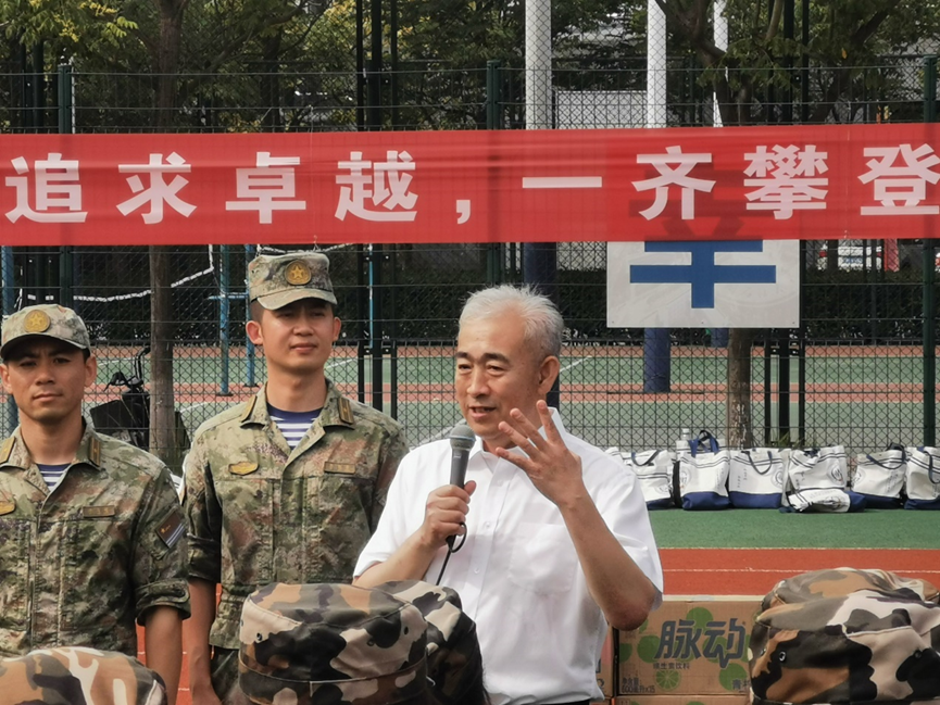 随后,赵放辉和到场老师对同学们的身体健康进行了关心和询问,为同学们分发了饮料,并叮嘱同学们注意防晒,注意休息,遇到困难及时和教官和辅导员老师沟通。