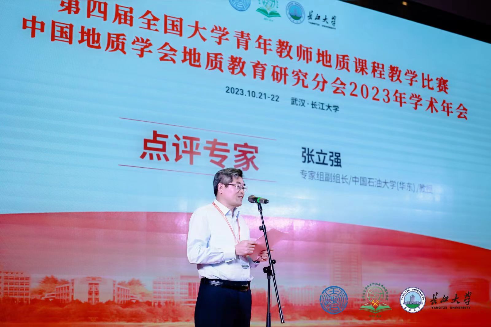 10月21日至22日,由中国地质学会主办,地质教育研究分会、长江大学承办的第四届全国大学青年教师地质课程教学比赛暨中国地质学会地质教育研究分会2023年年会在长江大学武汉校区举行。组委会委员、院长刘华教授受邀参加了年会,山东省教学名师张立强教授作为本次教学比赛的专家组副组长和点评专家参加了本次比赛。