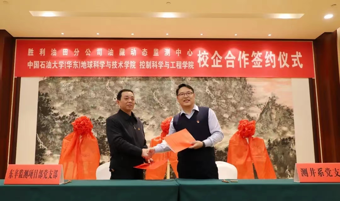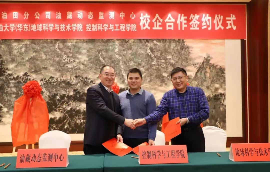 为加强校企合作,推进产学研融合,12月15日,必赢bwin线路检测中心与胜利油田分公司油藏动态监测中心(以下简称“动态监测中心”)在胜利油田举行了全面合作协议签约仪式。动态监测中心党委书记、副经理李建荣,经理、党委副书记李洋,油田动态监测高级专家柴德民等企业领导和专家,以及必赢bwin线路检测中心院长刘华、办公室主任王冠,控制科学与工程学院党委书记刘伟锋、副院长陈鸿龙等领导和专家共同出席签约仪式。动态监测中心李建荣书记主持会议。