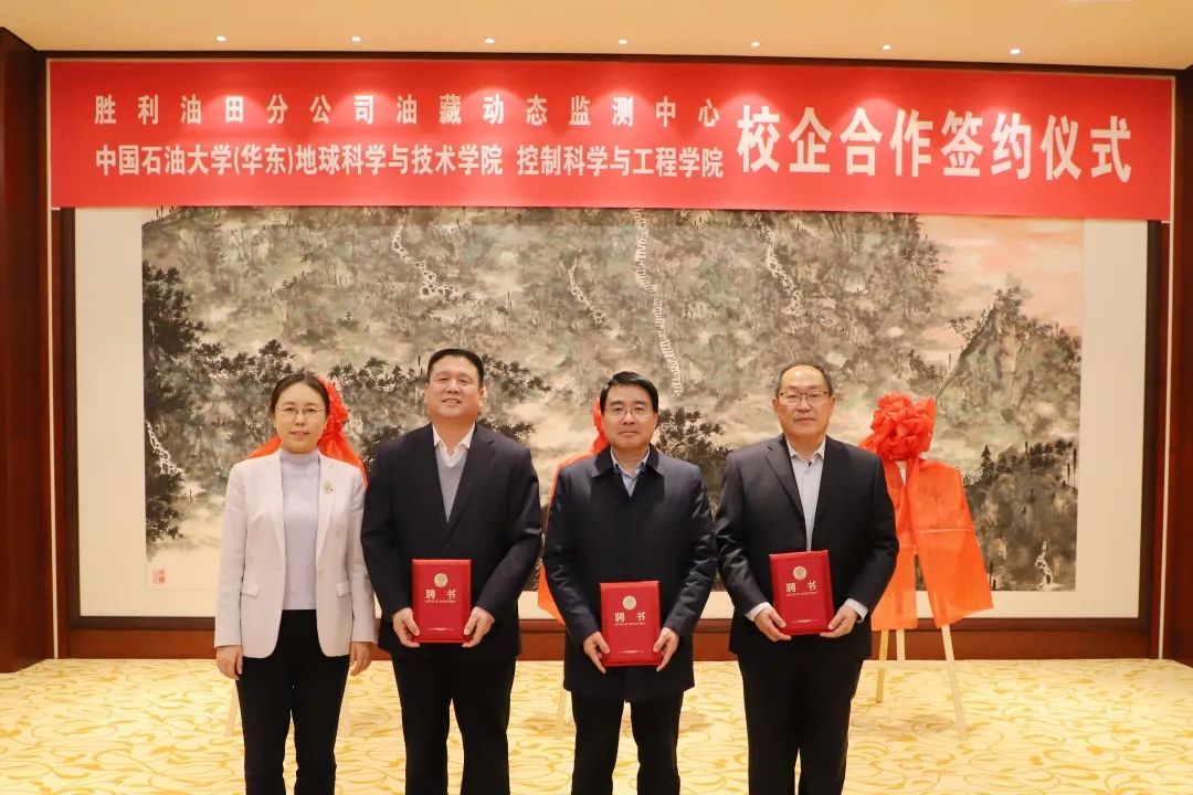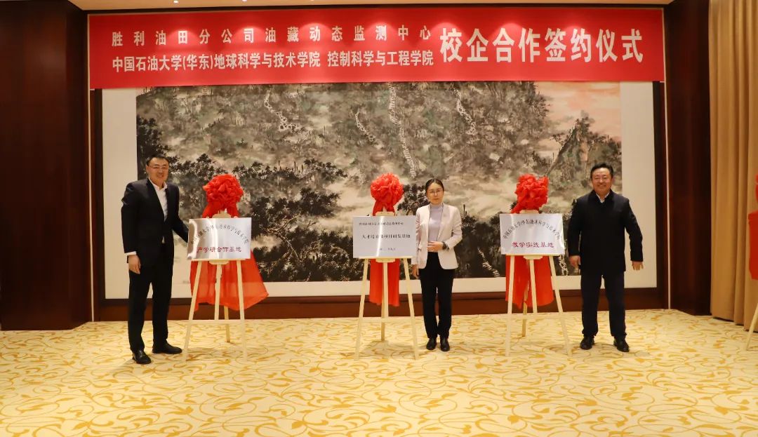 在签约仪式上,校企双方签署了全面合作协议并举行共建基地揭牌仪式,约定双方共建教学实践基地、产学研合作基地、人才培养及项目研发基地,明确了在人才培养、科技创新、技术研发等方面的合作机制和内容,为双方的合作提供了明确的指导和保障。双方现场还签署了合作项目意向书、党建联建协议,颁发校外指导教师和企业顾问聘书,标志着胜利油田分公司油藏动态监测中心与必赢bwin线路检测中心全面合作正式启动。