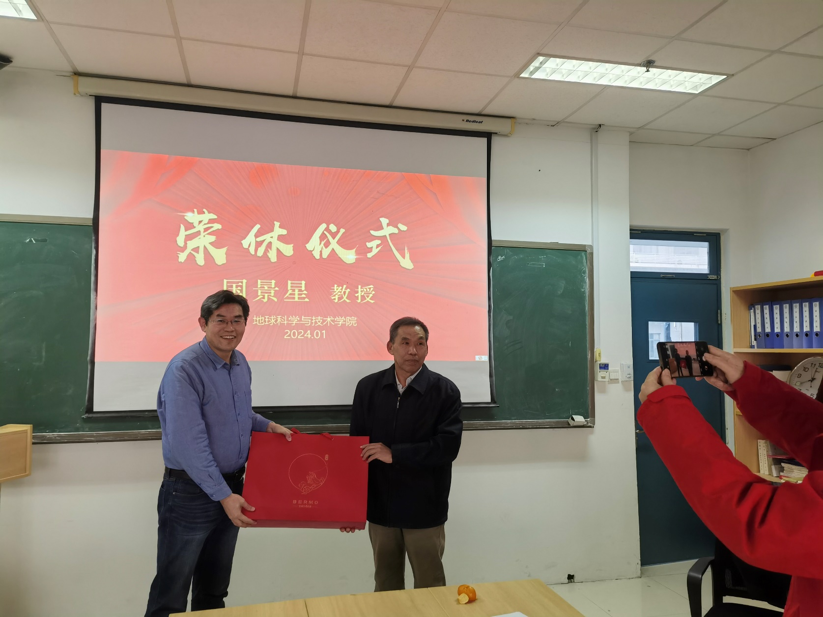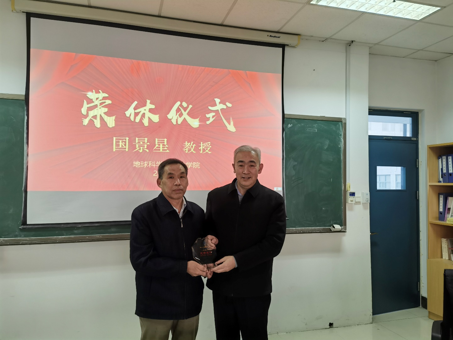王德钊主席、赵放辉书记、张军华主席、张立强主任和青年教师代表为国景星教授颁发荣休证书和纪念品