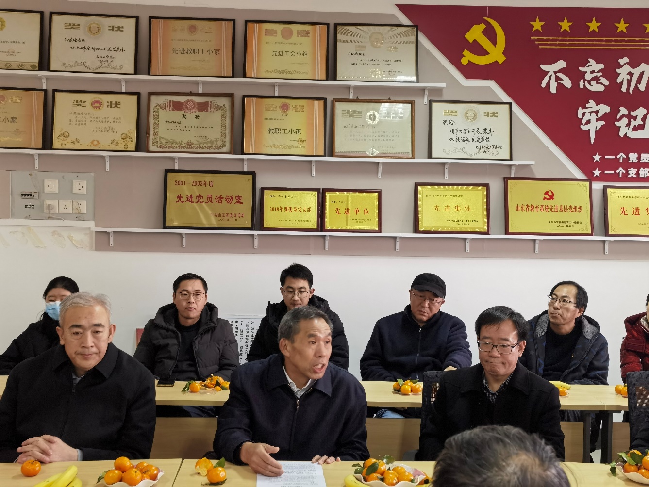 王德钊主席回忆了与国景星教授20多年的友谊,称赞其担任系党支部书记时勤勤恳恳,带领支部获山东省先进党员活动室;感谢其担任院工会主席时积极组织活动,营造良好氛围。最后对国景星教授荣休表示祝贺,感谢他在科研和教学工作中长久以来的付出。