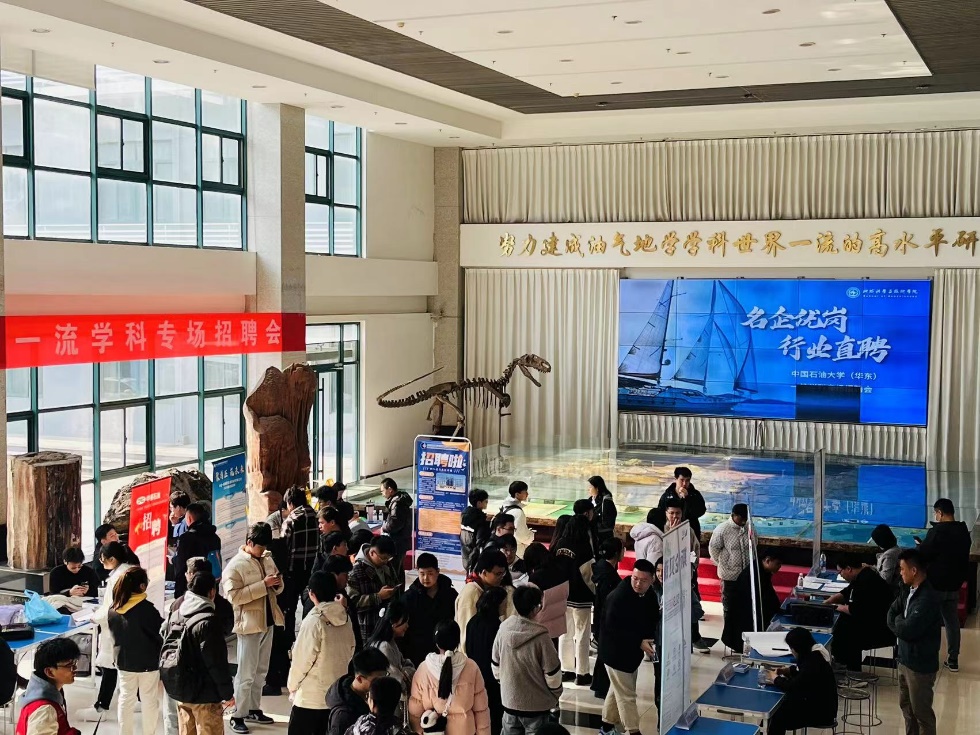 为更好推进2024届一流学科专业毕业生实现高质量就业,3月14日,必赢bwin线路检测中心与石油工程学院联合举办的“名企优岗 行业直聘”一流学科专场招聘会于工科楼C座大厅、工科楼B座大厅顺利开展。中海艾普油气测试(天津)有限公司、斯伦贝谢中国公司、安东油田技术集团、齐鲁理工学院等近40家知名企事业单位通过线上线下结合的方式来院招聘。