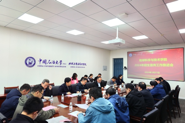 宗兆云宣读了学院《关于成立本科招生宣传工作领导小组的决定》。郑健传达了学校2024年招生宣传工作主要内容,从招生现状、工作重点、注意事项等几个方面对当前学校面临的招生现状进行总结分析,并就地学类专业高质量招生给出了意见建议。
