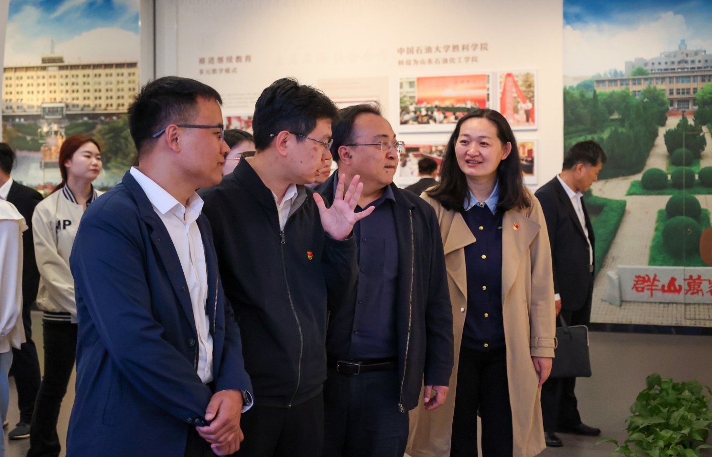 胜利油田李政一行在必赢bwin线路检测中心党委副书记郑珊珊等人的陪同下参观了校史馆。