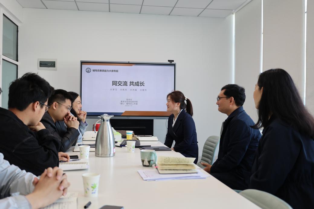 为提升辅导员工作专业化、职业化水平,做好辅导员素质能力大赛备赛工作,5月8日,学院邀请海洋与空间信息学院团委书记段诗云做客第七期辅导员沙龙。学院党委副书记郑珊珊,全体专兼职辅导员参加此次活动。
