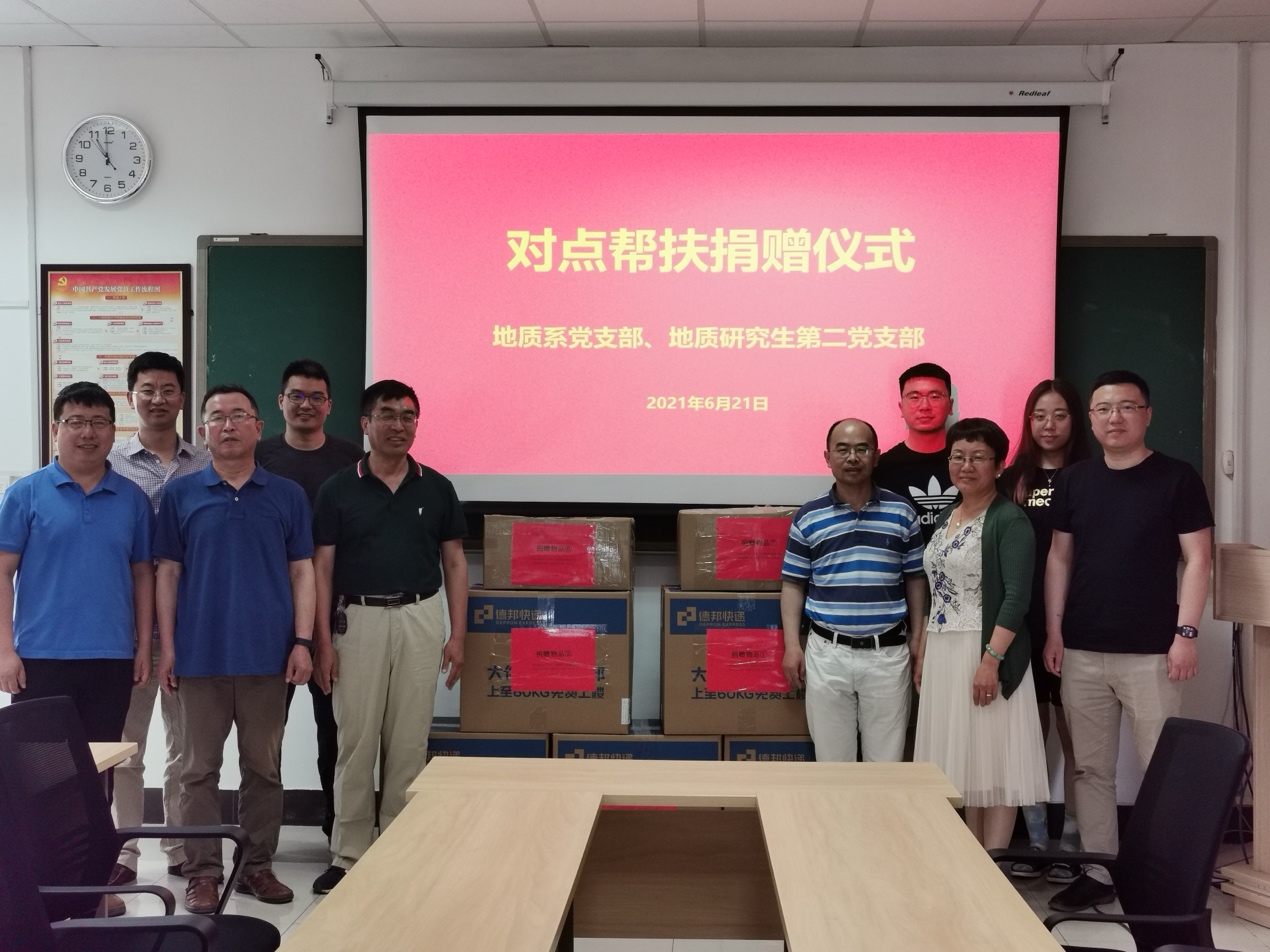 地质系全体教职工参与科左后旗帮扶,在推动消费帮扶、科技助力、挖掘潜力资源等方面做出重要贡献。一是发挥支部组织优势,捐款捐物持续帮扶。地质系年人均以购代捐500元以上,最高超额1800元,总金额达10万元等。二是依托学科专业优势,科技帮扶走在前列。帮助科左后旗政府深入挖掘当地地质景观、油气资源、天然碱、铀矿和玄武岩纤维材料等稀缺资源。地质系教师吕洪波教授助力景区获批国家4A级景区,并规划建设5A级景区和国家地质公园。党支部书记孟凡超带领火山岩研究团队助力辽河油田对科左后旗区块重新进行勘探工作,近五年,在张强凹陷新发现火山岩探明石油地质储量1039万吨,钱家店凹陷发现了稀缺铀矿资源。三是深挖当地潜力资源,助力实现乡村振兴。围绕新材料开发,地质系教师发挥专业特长,为科左后旗政府进行玄武岩纤维企业招商引资提供了技术支撑。