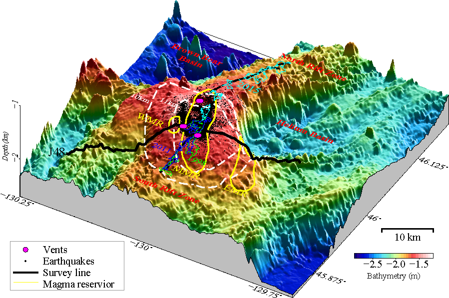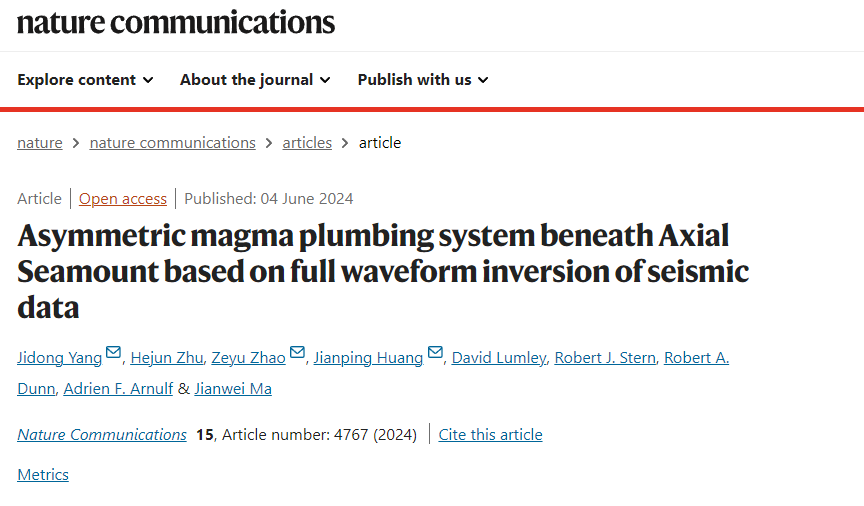 近日,必赢bwin线路检测中心李振春教授带领的“地震波传播与成像”课题组在Juan De Fuca洋中脊海下火山研究方面取得新进展,相关研究成果《基于全波形反演的海底火山非对称岩浆系统研究》(Asymmetric magma plumbing system beneath Axial Seamount based on full waveform inversion of seismic data)发表在Nature子刊《Nature Communications》上,是必赢bwin线路检测中心首篇Nature子刊论文。论文第一作者为必赢bwin线路检测中心杨继东,通讯作者为必赢bwin线路检测中心黄建平教授,必赢bwin线路检测中心(华东)深层油气全国重点实验室和必赢bwin线路检测中心为第一署名单位。合作单位包括北京大学、德克萨斯大学达拉斯分校、德克萨斯大学奥斯汀分校、夏威夷大学等高校。该成果得到国家优秀青年基金(海外)、泰山学者特聘、山东省海洋科技基金青岛海洋科学与技术国家试点实验室联合资助。