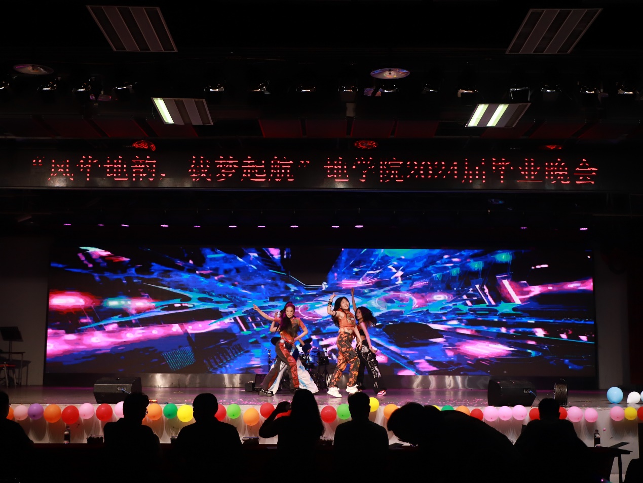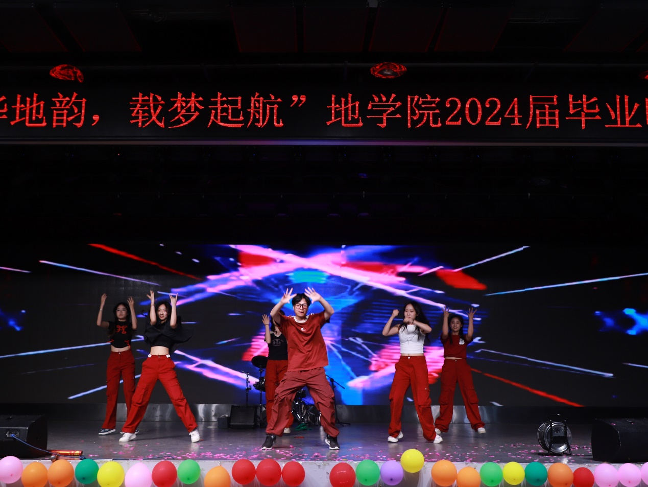 晚会在地物2001班与学校传统武术协会带来的武术表演拉开序幕,当神气十足的舞狮亮出“勘探报国,我辈先行”的标语时,瞬间燃起了全场氛围;在欢呼与喝彩中,由林姝含、邢伯申等人带来的毕业歌曲串烧带同学们回顾大学时光的点滴;SM广场舞女团带来的舞蹈《Supernova》激情澎湃,活力四射,赢得热烈掌声;2020级本科生班长团支书、田治康、乌达木带来的歌曲《牧马城市》将观众带入一个充满希望和激情的世界,激励毕业生勇敢面对生活中的挑战。