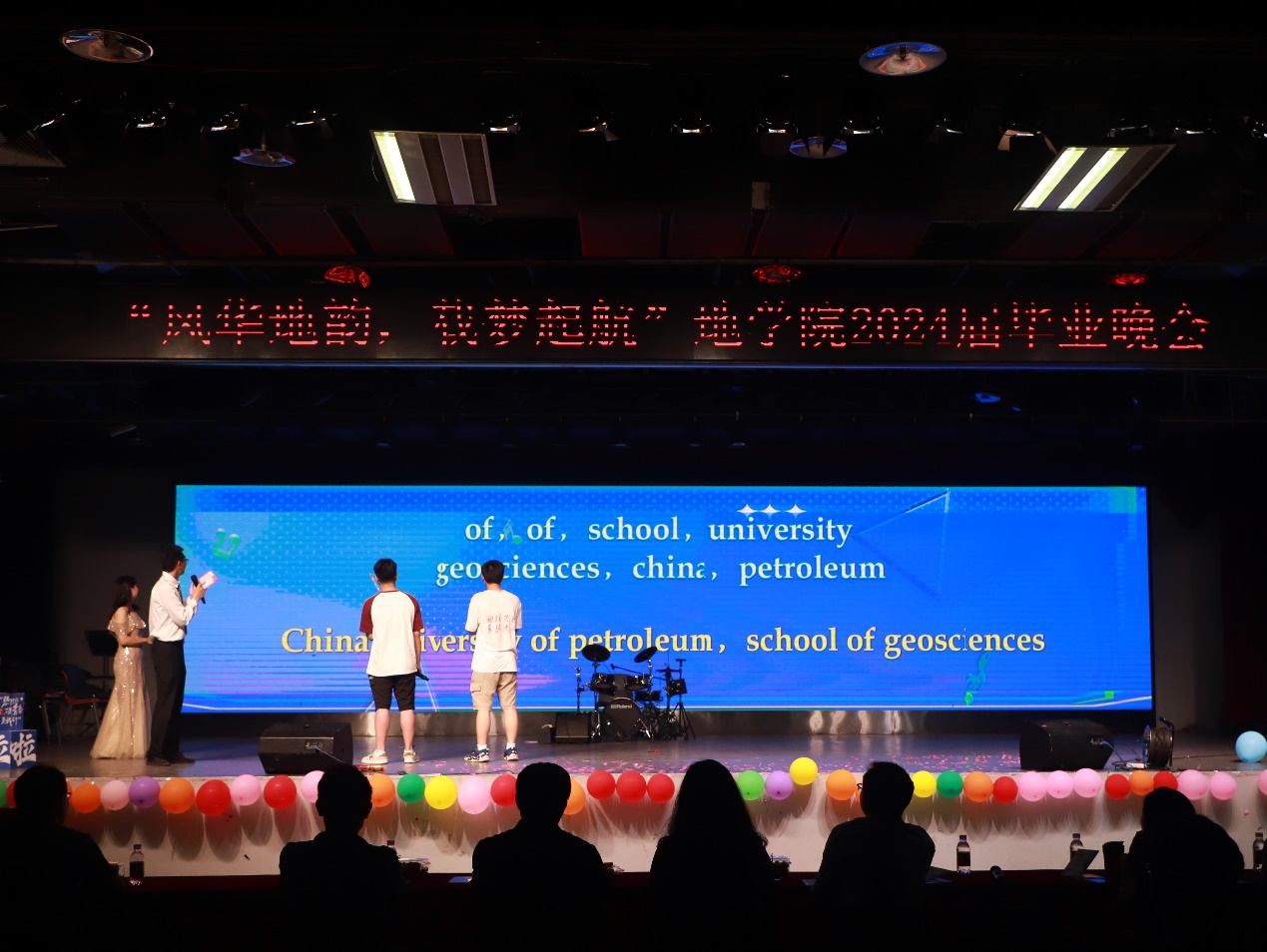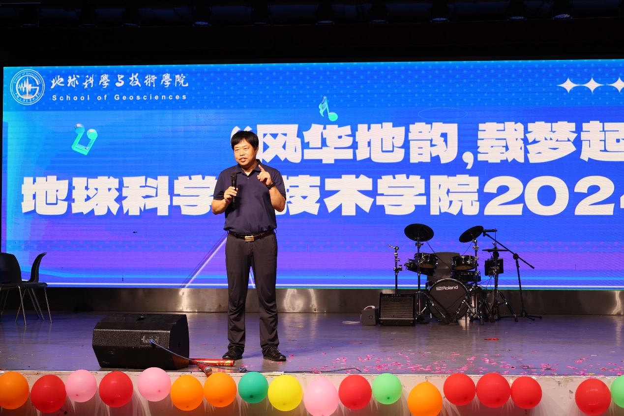 6月22日晚,学院2024届“风华地韵,载梦起航”毕业晚会在唐岛湾三楼多功能厅举办。学院党委书记牛庆玮,党委副书记郑珊珊,资源系党支部书记、系主任张立强,地质系主任吴孔友,测井系党支部书记谭宝海,班主任代表杜启振,学院学生工作队伍以及全体2024届毕业生参加晚会。毕业晚会由学院教职工、2024届毕业生、艺术团等带来精彩纷呈的节目,毕业班辅导员徐明权、张艳芳,毕业生王圣钧、张泽宇主持。