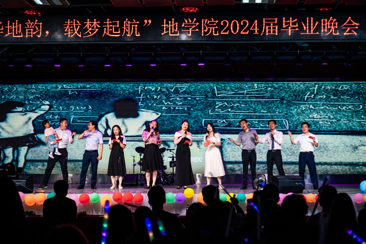 由零卡糖乐队带来的歌曲《永远都会在》在重刷吉他与轻拨细弦间、黑与白的琴键交错间、大鼓与小鼓含蓄交错敲击间将情感表达到极致;辅导员队伍带来的歌曲《启程》表达了对毕业生的深深不舍与希望,祝福毕业生们保持热爱,一路前行;地物2002班毕舒然、乔莎莎带来的器乐弹唱《那个夏天》清新而纯净,温暖而明媚,照亮了每位观众心中的角落。