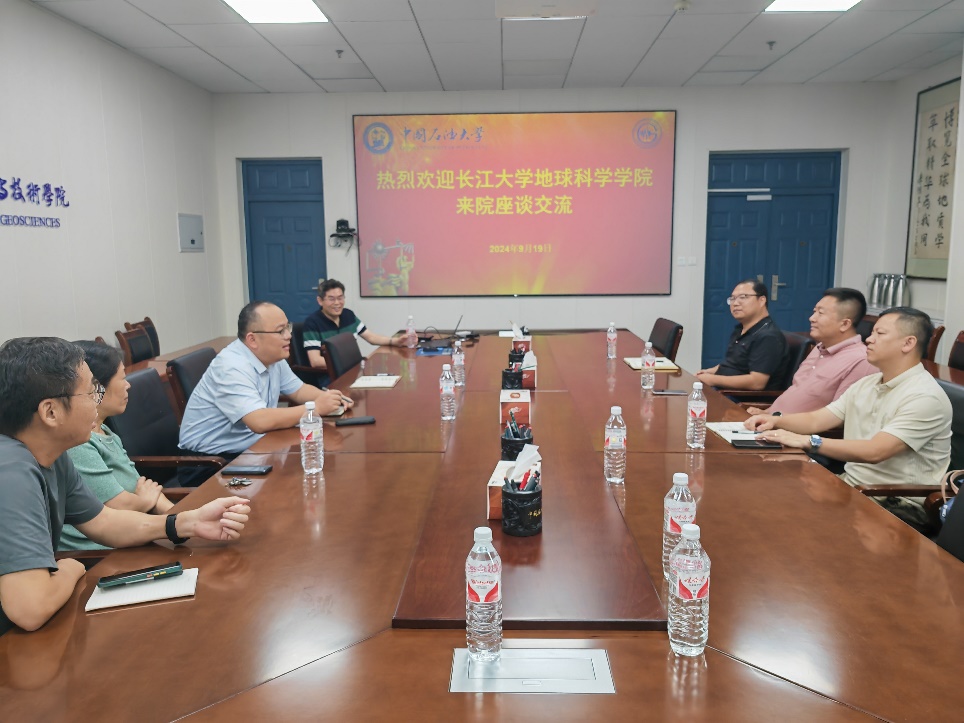 2024年9月19日,长江大学地球科学学院常务副院长吴楠一行来必赢bwin线路检测中心调研交流。学院院长宗兆云,副院长张宪国,资源系主任、党支部书记张立强,资源系教师,教学秘书等参加座谈交流,座谈会由副院长张宪国主持。
