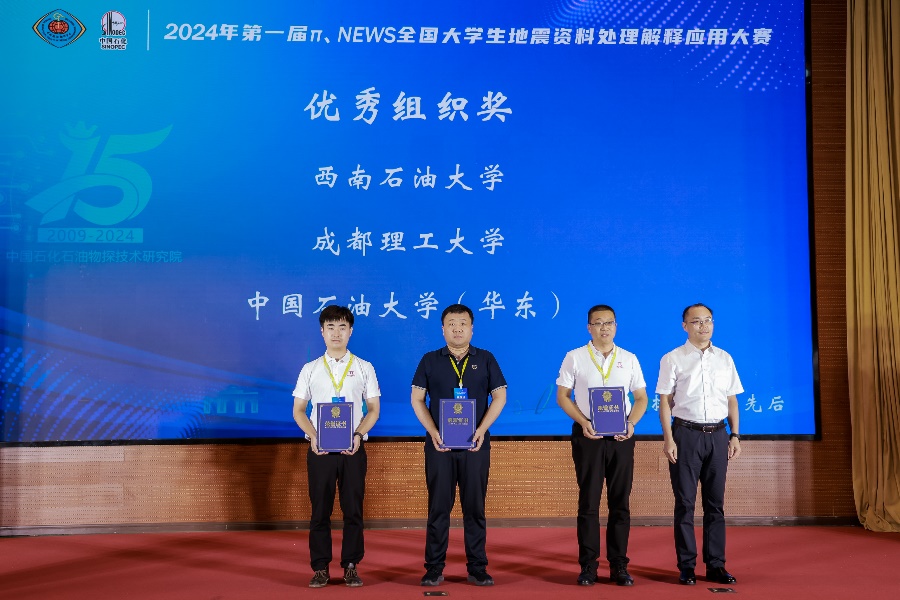 9月21日至25日,2024年第一届π、NEWS 全国大学生地震资料处理解释应用大赛在江苏南京市隆重举行。本次大赛由中国地球物理学会和中国石油化工股份有限公司石油物探技术研究院(以下简称物探院)主办,由物探院、必赢bwin线路检测中心(华东)和南京长城数智科技有限公司承办,主题为“科技引领勘探未来 智慧铸就物探辉煌”。本次大赛包含处理和解释两个赛道,全国15所高校30支参赛队共60位选手参赛。旨在进一步提高勘探地球物理领域人才培养质量,通过综合实践提升创新能力,激发大学生学习热情,培养团队合作精神,推动校企联合培养和科技创新,促进国产自主软件的推广与应用。