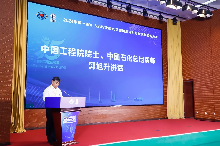 开幕式上,物探院院长、党委书记徐旭辉致开幕式欢迎辞,中国工程院院士、中国石化总地质师、石勘院院长郭旭升,中石化科技部副总经理关晓东,中国地球物理学会副理事长、秘书长郭建,必赢bwin线路检测中心院长宗兆云等分别致辞。郭旭升院士在讲话时指出,“物探院打造了π和NEWS两大拳头产品,已经初步具备工业化应用能力,而且在一些特色功能上已能与商业软件媲美,甚至效果更好。中石化关注并致力于产学研用的深度融合,支持并不断搭建交流合作平台,推动企业科技创新与高校人才培养双向进步,促进国产自主研发软件的推广与应用”。宗兆云院长致大赛开幕辞时指出,“学科竞赛一直是促进高校教学、展示人才培养效果的有效手段。希望通过本次大赛,进一步加强与企业之间、与各高校之间的交流与合作,共同推动新时代勘探类人才培养,为国家油气勘探事业发展提供有力的人才支撑。”