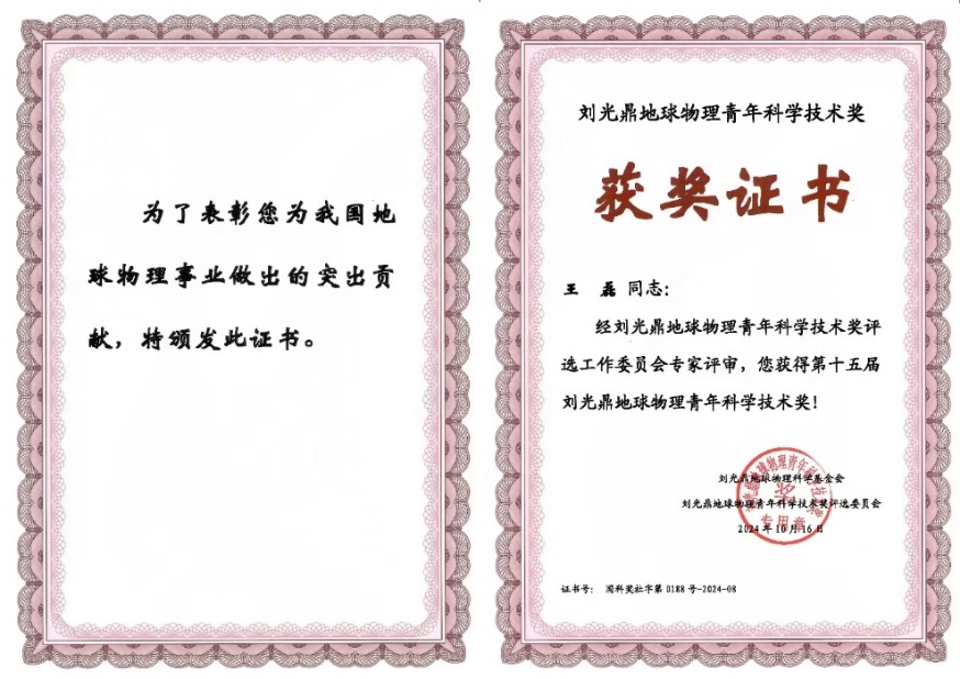 王磊副教授获评刘光鼎地球物理青年科技奖