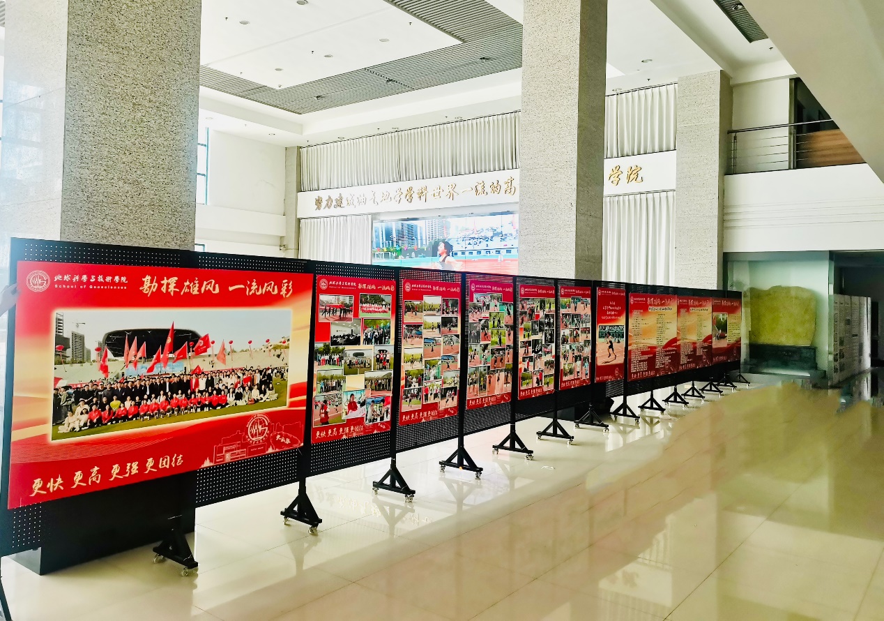 在运用线上新媒体呈现必赢bwin线路检测中心师生征战校运会事迹的同时,线下联动,在工科楼C座一楼大厅策划了“勘探雄风,一流风彩”的专题展,通过大气的设计、丰富的图文资料,生动诠释了“求实、尖兵、协作、奉献”的勘探精神。研究生运动员徐旺第一时间参观了专题站,“学院不仅在赛场上为我们摇旗呐喊,赛事结束后重视宣传师生拼搏成果,让我们所有运动员感觉更有劲儿”。