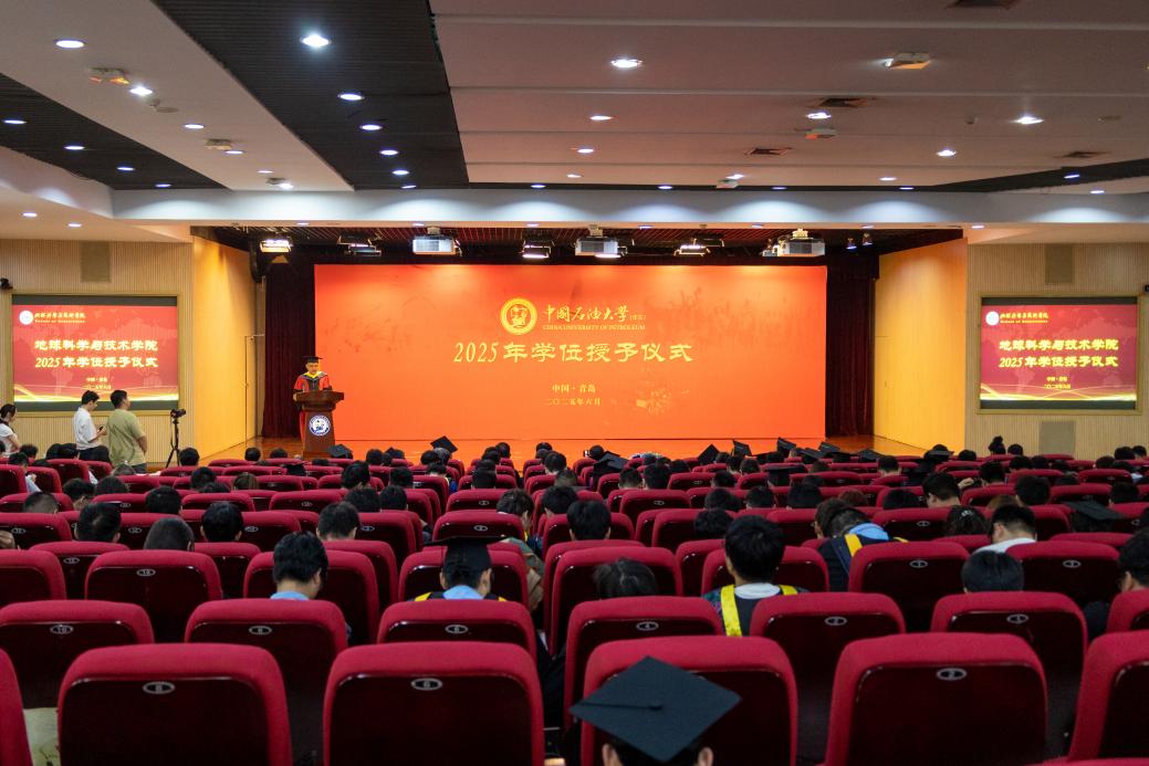 6月22日,学院2025年毕业典礼暨学位授予仪式在逸夫礼堂隆重举行。学院2025届全体毕业生,学院院长宗兆云、党委书记牛庆玮,副院长苏远大、张宪国、王健、王冠,学院学位分委员会委员杜启振、陈勇,地质系主任吴孔友、资源系主任张立强、测井系主任张锋及教师代表、家长代表参加学位授予仪式,学院党委副书记郑珊珊主持仪式。