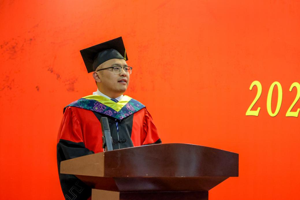 宗兆云代表学院向2025届圆满完成学业的全体毕业生致以最热烈的祝贺,向培养、陪伴毕业生成长成才的老师和家长表示最崇高的敬意和最衷心的感谢。他表示,2025届毕业生在知识的沃土上挥洒汗水,使青春的种子绽放出绚烂夺目的理想之花,展现出了一流学科、龙头学院青年学子积极向上的精神风貌和新时代青年的责任担当,是学院最靓丽的名片。同时,也见证了学院的高质量发展,在新的一轮“双一流”学科建设中,地球科学学科ESI世界排名前1‰;2024软科发布的中国最好学科排名中,地质资源与地质工程名列前茅;新增深层油气全国重点实验室;首获国家自然科学基金基础科学中心项目;纵向重大重点项目数达“十四五”以来总和的两倍等成绩。今天的地学院,正朝着“努力建成油气地学学科世界一流的高水平研究型学院”的宏伟目标阔步前进。
