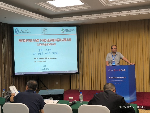 9月15-18日,第十一届中国石油地质年会在北京举行,学院师生代表20余人参加会议,其中我校校长郝芳院士作为指导委员会委员代表深层油气全国重点实验室受邀在高端论坛做《超深层油气富集机理:研究方法与最新进展》主旨报告,副校长操应长教授作为组织委员会副主任参会。卢朝进副教授联合主持“超深层海相碳酸盐岩成储成藏实验技术创新沙龙”。宗兆云、刘华、梁超、赵建华、卢朝进作为召集人主持分会场报告,胡钦红、刘华、王健等教授分别围绕油气基础地质理论新进展、油气勘探新技术、深层超深层油气地质与勘探等主题在分会场做了18场学术报告,全面展示了学院在相关领域研究的新进展。学院5名研究生在会议展板环节进行了学术论文展示,其中硕士生张世泽荣获优秀展板奖。